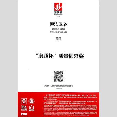 頒發單位:沸騰杯衛廚產品質量性能測評組委會