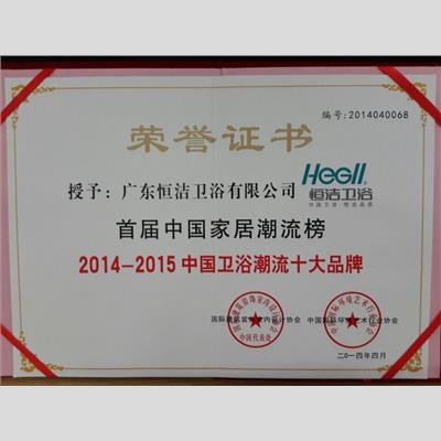 獎 項:(美家網)首屆中國家居潮流榜 2014-2015中國衛浴潮流十大品牌