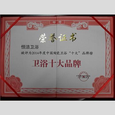 獎 項:2014年度中國陶瓷衛浴“十大”品牌榜 衛浴十大品牌