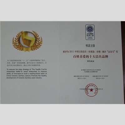 獎 項(xiàng):百姓喜愛的十大潔具品牌