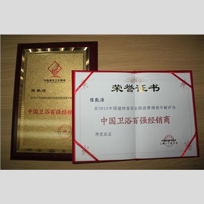 獎 項(xiàng): 2012年衛(wèi)浴百強(qiáng)經(jīng)銷商