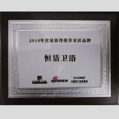 獎 項:中國房地產精裝修項目推薦使用的衛浴品牌
