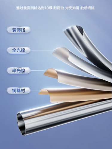 花灑的材質和電鍍工藝直接影響其使用壽命。優質的花灑會采用高等級電鍍工藝,恒潔花灑的10級鍍層技術,能通過48小時酸性鹽霧測試,歷久彌新。
