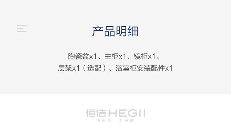 - 標配多功能鋁鏡柜,可升級為二代鋁鏡柜,或選配悅顏智能鏡搭配,全面提升體驗; 可選配開放式活動鏡層架,存取更便捷;