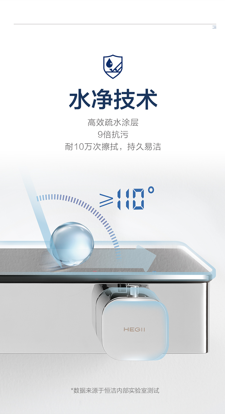 - 恒潔水凈技術,高效疏水,9 倍抗污, 10萬次擦拭持久易潔