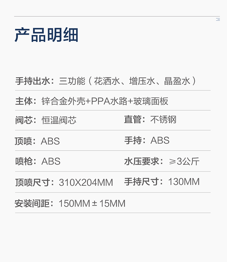 - 恒溫防燙技術,控溫快準穩,最快0.2s響應, 最小 0.5℃水溫波動