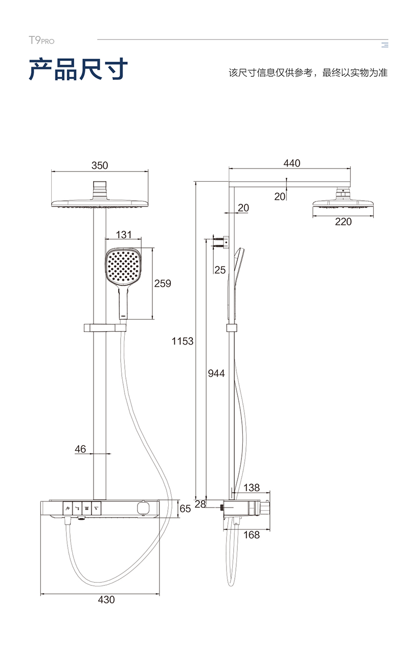 - 350mm超大頂噴,更大噴淋范圍,盡享舒爽淋浴