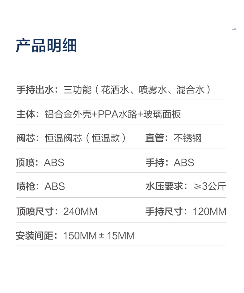 - 恒潔增壓技術,0.45mm極致細孔設計,出水密集柔和
