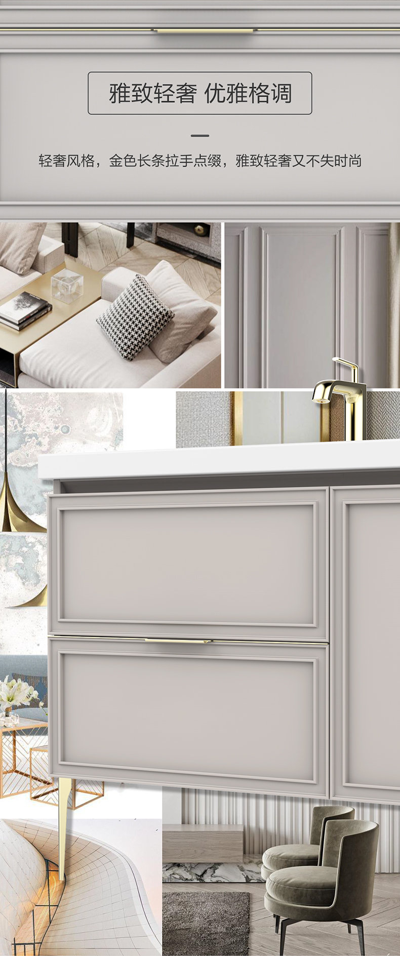 現(xiàn)代輕奢風格:金色長條拉手點綴,雅致輕奢又不失時尚
