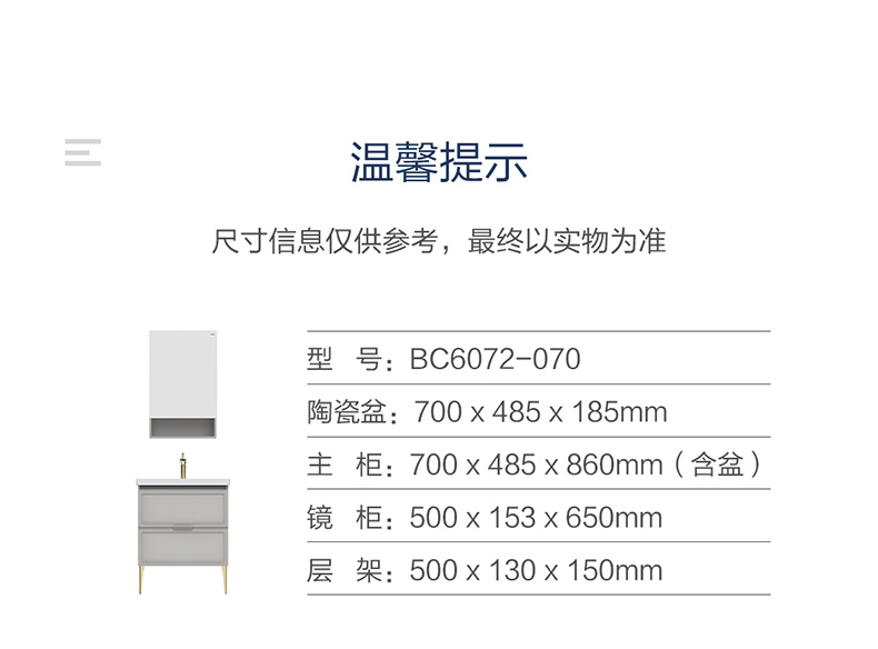 雙材質運用:鋁合金鏡柜,抑菌防霉,防潮耐用;柜身生態木,免漆環保,面板使用鋁型材立體邊框;
