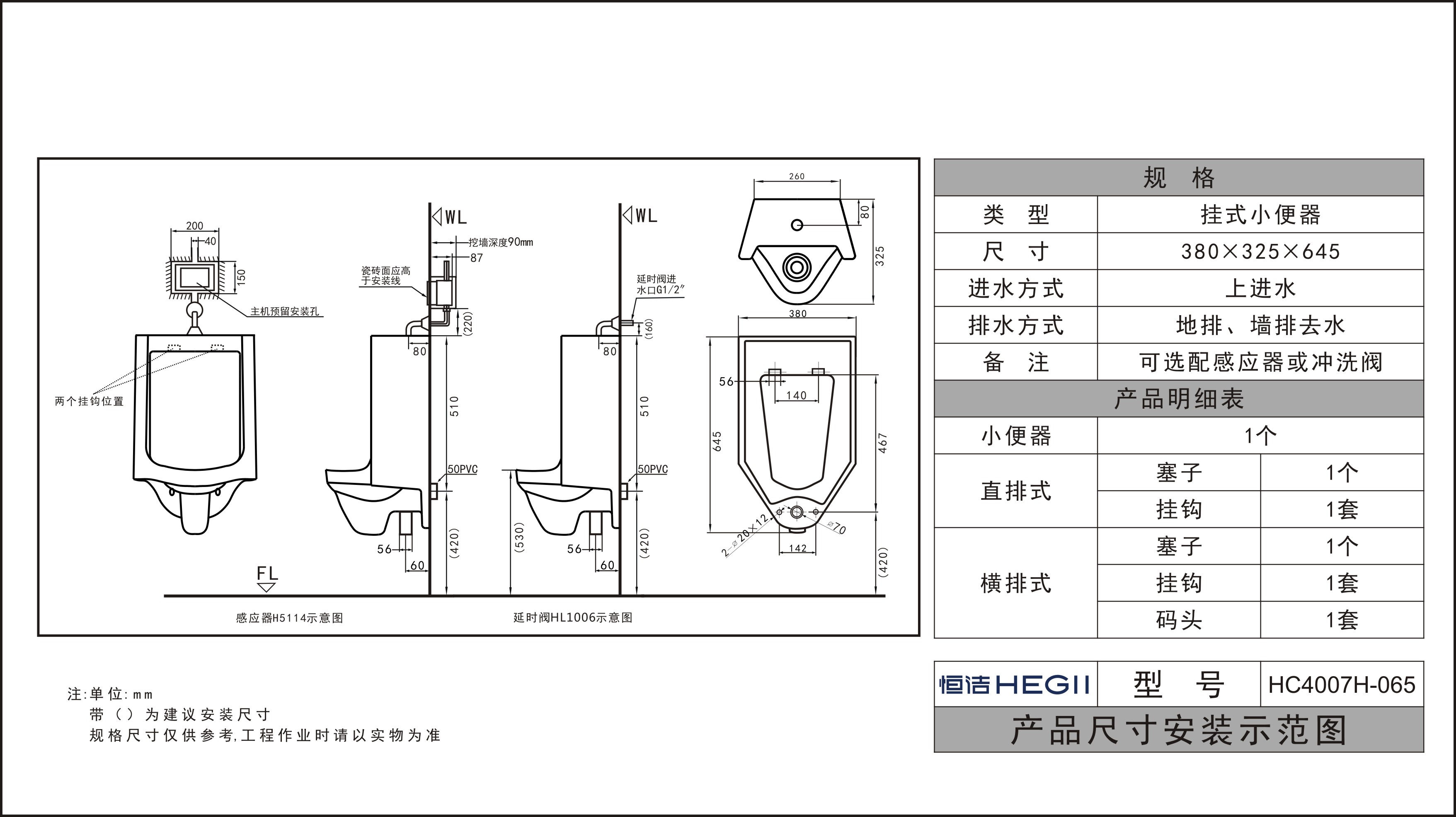 備注:可選配沖洗閥HMV21006\21002;感應(yīng)器HMV11050AC/DC(需搭配上進(jìn)水配件)