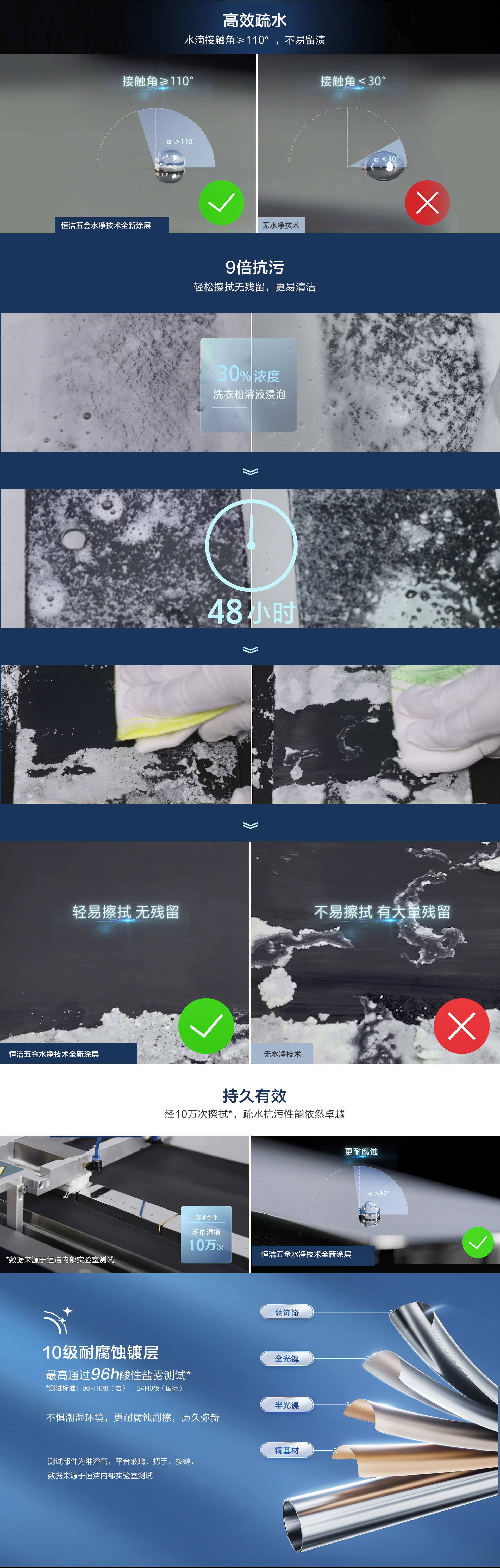 10級鍍層技術,最高通過96h酸性鹽霧測試,持續光亮,經久耐用