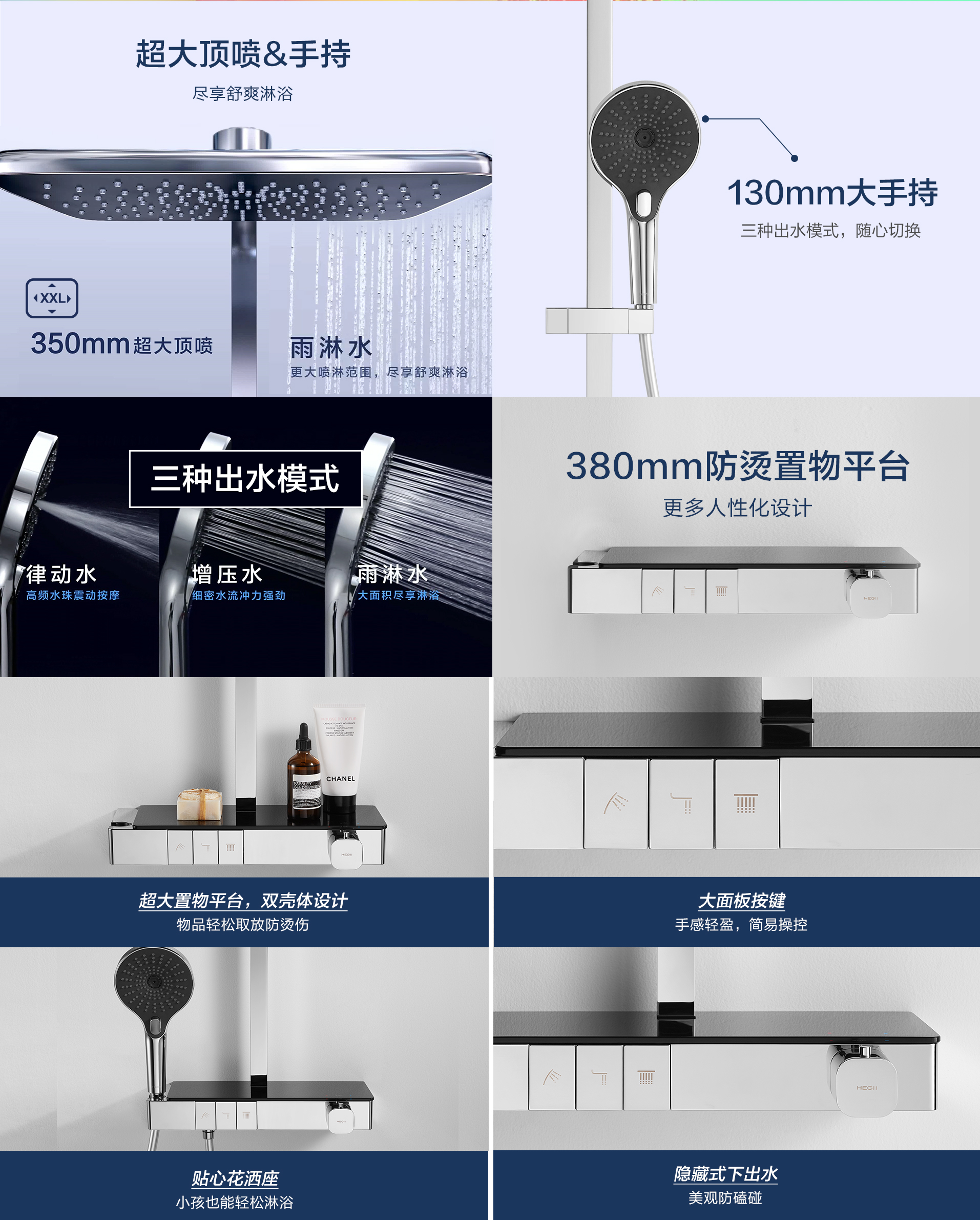 350mm超大頂噴,更大噴淋范圍,盡享舒爽淋浴
