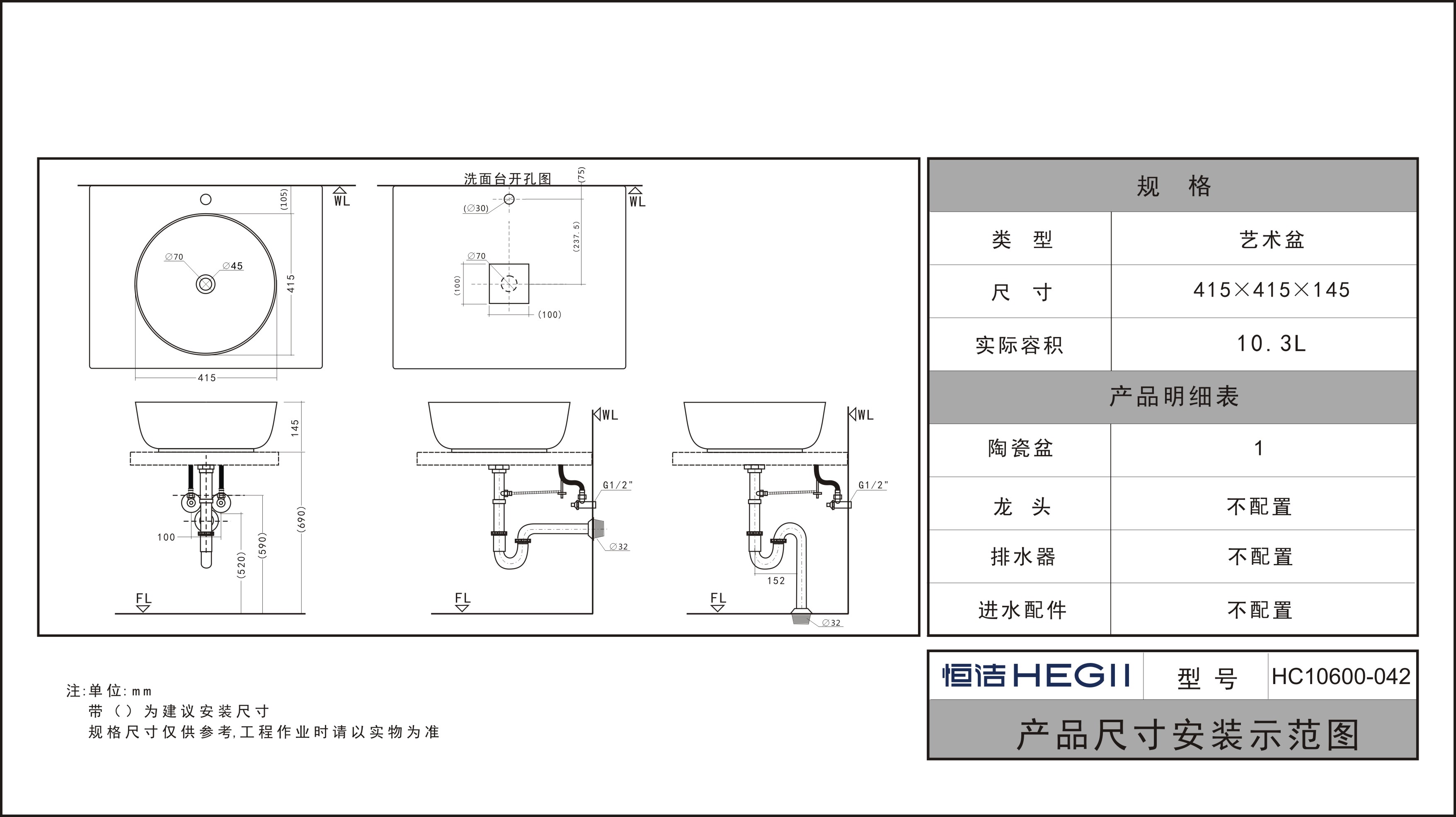 HC10411-046 圓形半嵌入式藝術(shù)盆